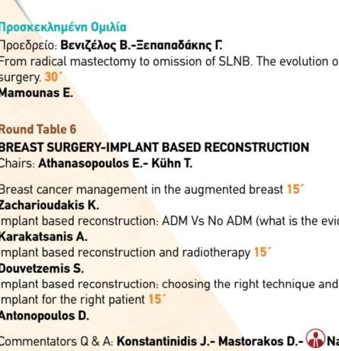 Eίχα τη χαρά και την τιμή να είμαι μέλος της οργανωτικής επιτροπής και να μιλήσω για το πολύ ενδιαφέρον θέμα: "Αποκατάσταση του Μαστού με Ενθέματα σε έδαφος Ακτινοθεραπείας", ως προσκεκλημένος ομιλητής.